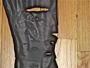 Este ejercicio iluminará el poder de la cuchilla Xacto, ya que su corte se probs rebanada a través del frente y la parte posterior del material a la superficie que está trabajando. Esto está bien, siempre y cuando Mantenga los cortes cortos. Si su corte abarca todo el ancho de la polaina, riesgo de hacking completamente apagado el material y no tener nada que mostrar como resultado de su dalliance DIY. Sólo estoy diciendo.