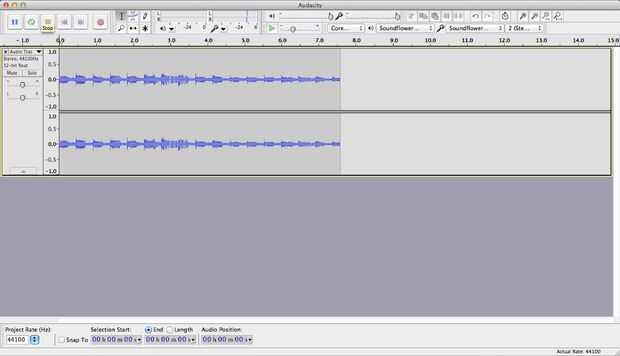 • Una vez terminada su audio jugando Presione el botón stop en Audacity.