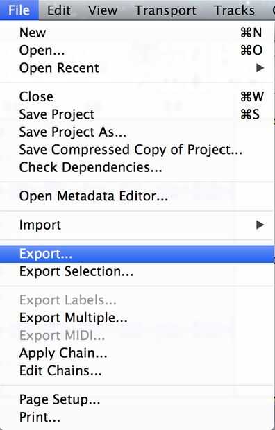 • Para guardar el clip de audio, seleccione Exportar en el menú archivo.