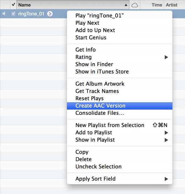 • En iTunes click derecho en el clip de audio y seleccione crear versión de AAC.