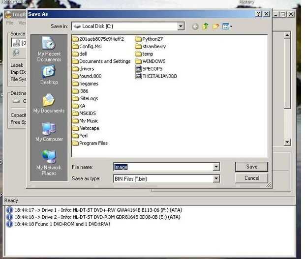 De esta siguiente pantalla, puede cambiar el nombre de archivo, elegir donde vas a enviar y cambiar el tipo de archivo (.bin, .img o .iso). Si eres ripear un disco de juego, todos estos vienen en prácticos, pero .img es generalmente el mejor.
