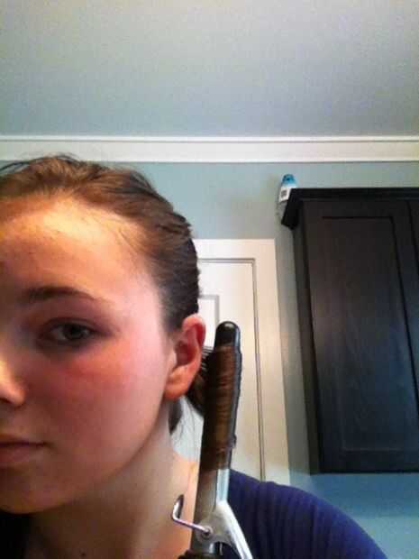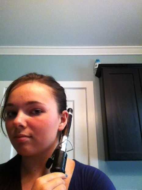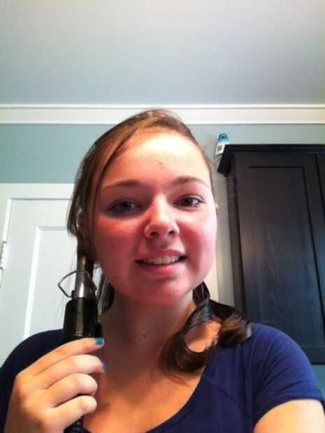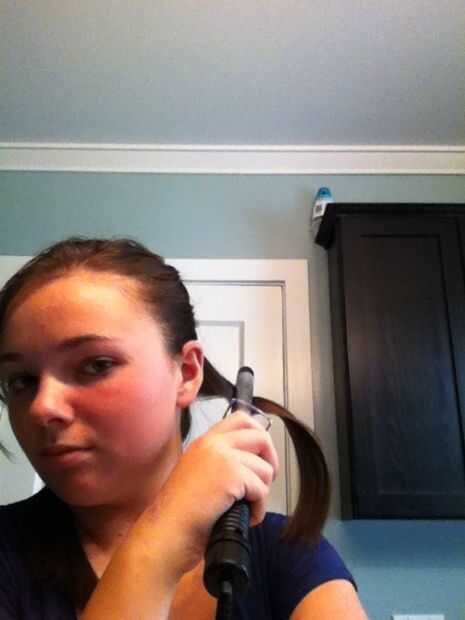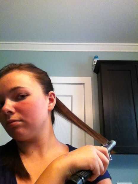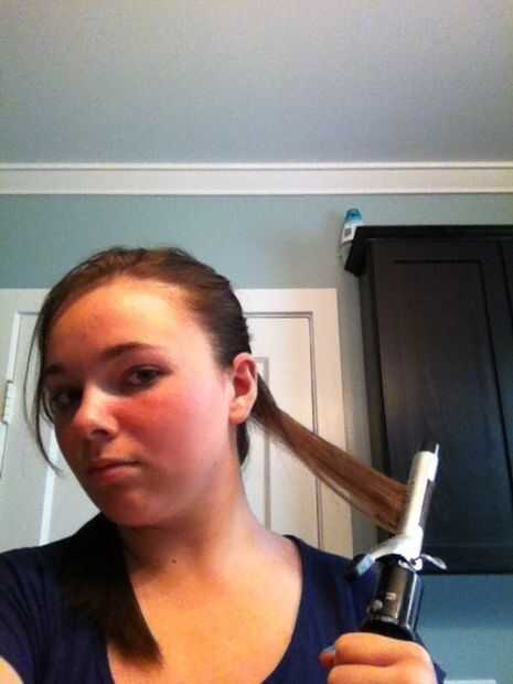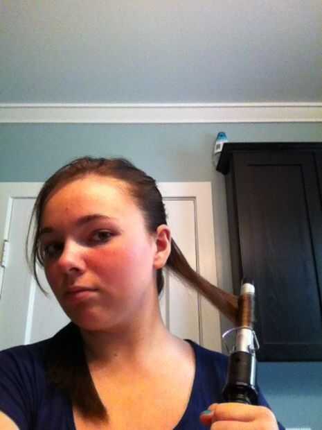 Agarrar un pedazo de cabello con el rizador y envuelva el hierro que se encrespa alrededor de él. Luego holbit para 20 o más segundos dependiendo del grosor de tu cabello. Luego poco a poco tomar hacia fuera y hairspray.