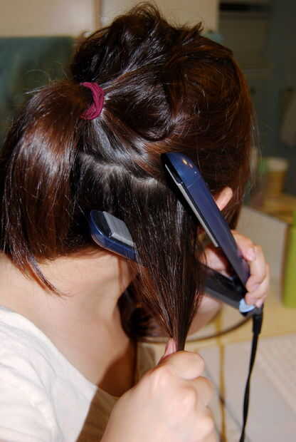 Para mí, la plancha es el Santo Grial de herramientas del pelo. No sólo puede enderezar, pero puede rizar, prensar y onda de pelo.Todo lo que necesitas es:1) una plancha2) un cepillo de dientes3) pinzas de pelo de4) calor protector spray (opcional)5)