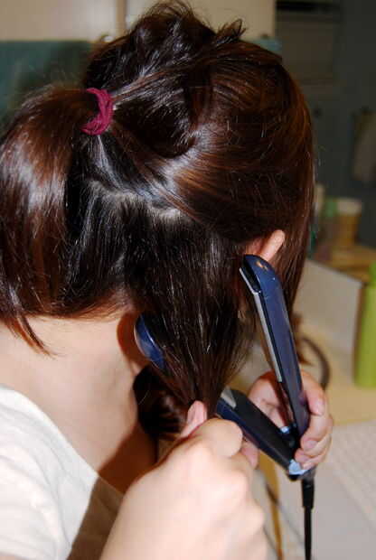 Para mí, la plancha es el Santo Grial de herramientas del pelo. No sólo puede enderezar, pero puede rizar, prensar y onda de pelo.Todo lo que necesitas es:1) una plancha2) un cepillo de dientes3) pinzas de pelo de4) calor protector spray (opcional)5)