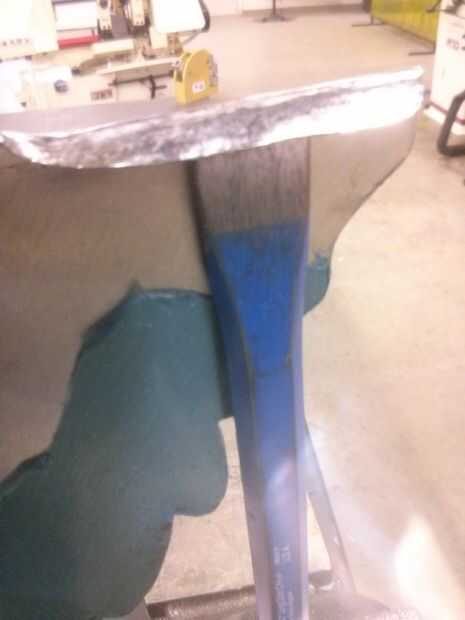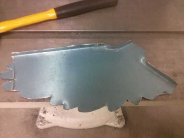 En las fotos, se puede ver que empezamos doblando la chapa sobre un borde afilado, como el borde de un soporte del yunque o lijadora.