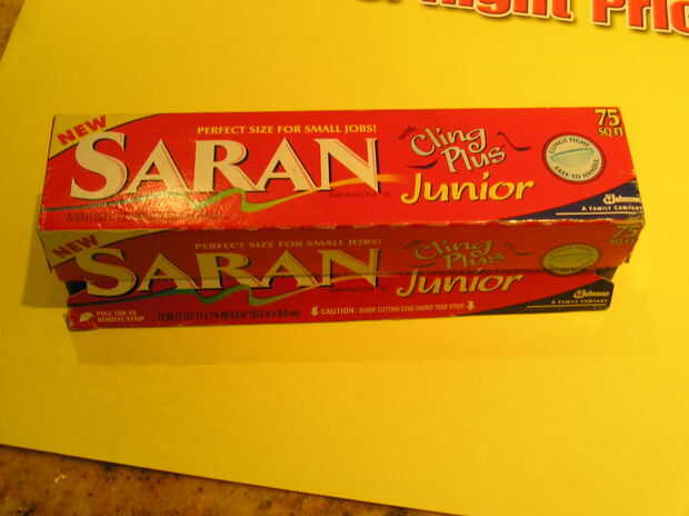 ¿por qué tamaño mini? Quería evitar la molestia de cortar una pieza de abrigo se aferran con tijeras cada vez que tenía necesidad de un tamaño pequeño de la envoltura plástica. ¿Mi solución? Dividir un envase por la mitad. Así, podía arrancar una pieza cuadrada, ponerlo directamente sobre el punto que necesita para envolver y guardar un paso (de tratar de cortar la envoltura con las tijeras), y los problemas involucrados. Lo utilizado sobre todo para cubrir latas de mi gato de comida como que le alimentaban. Pero resulta útil para otros artículos para almacenarse en el refrigerador así. Yo había estado haciendo esto desde hace varios años cuando la empresa Saran hizo su versión... ahora, ya no se hace, y supongo que no había una demanda lo suficientemente grande para él. Su producto era 8 pulgadas de largo, mientras que el mío es sólo de 6". Quizás eso fue la razón por su de no tuvo éxito!