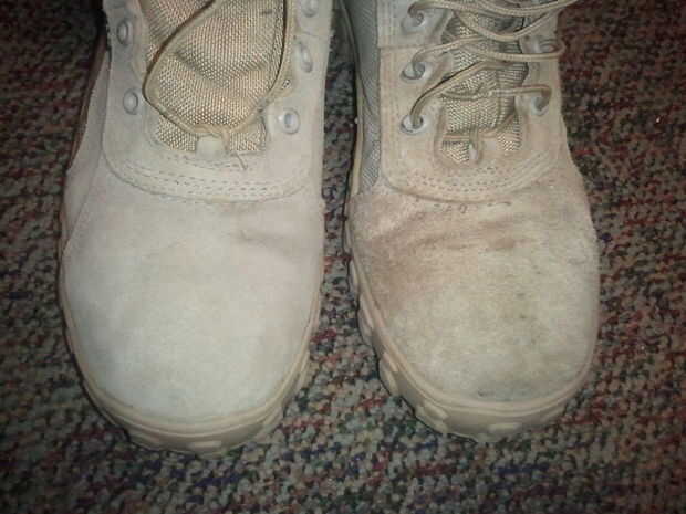 Algunos acondicionadores vienen en una botella de spray pero el spray Glovolium era $3 más por lo que no me. Use una toalla de papel o un trapo y aplicar el acondicionador a todas las superficies externas de la piel. Si tienes el spray, sólo rocíe directamente sobre el maletero. El cuero vuelven de un color ligeramente más oscuro pero no es sensible de más de unos pocos pies de distancia. El acondicionador llevará unas cuantas horas para secar y dependiendo de cómo tiesas las botas siguen después del paso 1, puede que desee agregar una segunda capa.
