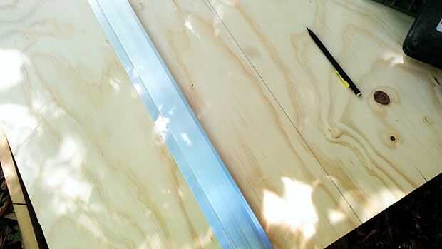 Suponiendo que está utilizando abrazaderas para mantener la regla en su lugar, use fina (1/8") piezas de desecho entre sus pinzas y la madera contrachapada. Esto mantiene la abrazadera dañen la madera.