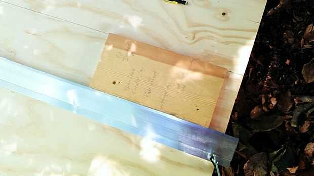--Cuando primero compré mi sierra, tomé un pedazo de chatarra madera y hecho y cortarlo para que es exactamente la distancia entre la hoja y el borde de la sierra. Muy bien! Así que lo uso para establecer la distancia entre la línea de corte y el borde recto.