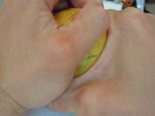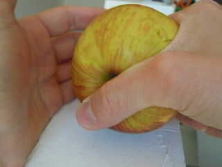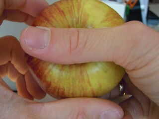 La mano humana puede hacerlo sin cualquier truco o ayuda. Y no dejes que nadie te dicen que una manzana verde es más fácil de romper que una roja. No importa el color. Basta con practicar. Comience con una manzana que es fácil de romper como una deliciosa oro (verde). Trabajar usted mismo en la cadena hasta que logra romper a un forjador de la abuela (también verde). Si es demasiado difícil para usted, use la pierna para apoyar las manos.