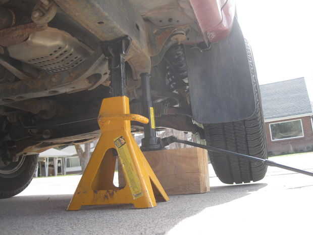 Nota: Asegúrese de que el neumático no todavía está tocando el suelo. Si está tocando, necesita el marco superior del gato para que el soporte del gato también puede extenderse más arriba.