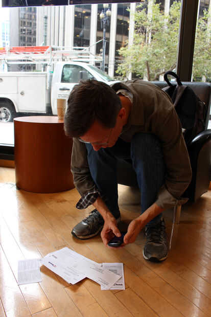 La tarjeta de crédito de la envolvente tiene una pegatina con un número de teléfono - llamar para activar la tarjeta. Como se muestra en la foto, John hizo esto en el piso del vestíbulo del Banco. Si estás preparado, usted puede hacerse cargo de esto antes de siquiera ir al Banco - es un poco más fácil de esa manera.