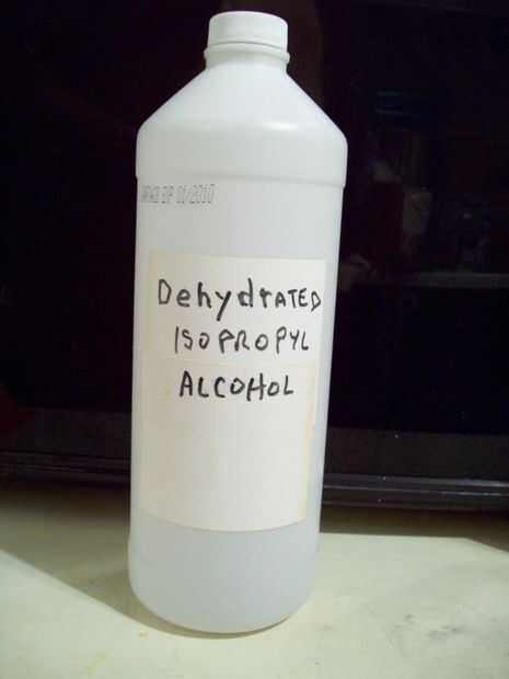 Etiqueta de la botella "Alcohol isopropílico deshidratado"