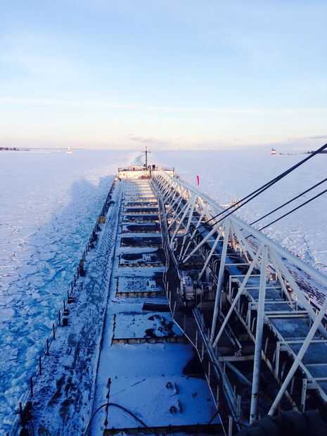 En este punto el hielo debe ser cada vez un poco más fino, relativamente hablando. Se puede ver hasta adelante, luz de la isla redonda. Si usted has sido retirar el hielo de la mañana llamadas, sabes que estás en aguas abiertas en el otro lado.