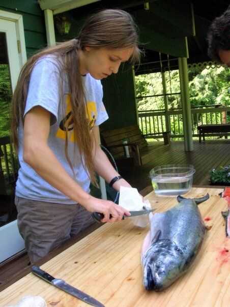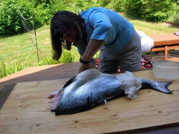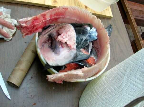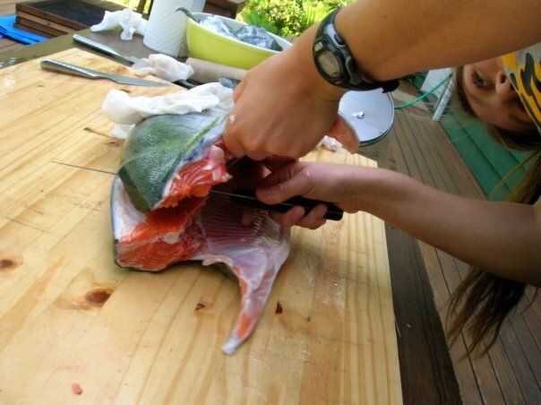 Cortar la cabeza y las branquias; éstos van en el cubo de desechos.