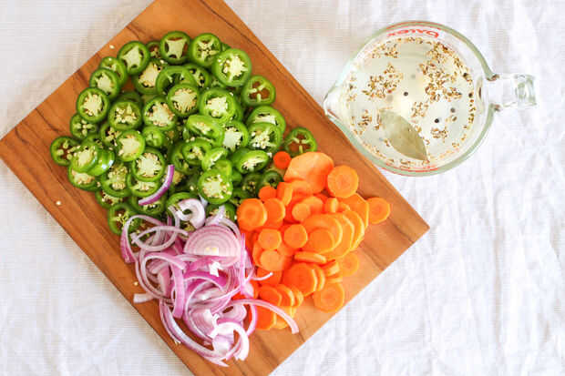 Cortar los jalapeños en rondas tan fina como usted como hago normalmente 1/4 de pulgada. Prueba los jalapeños y retire las semillas y las membranas si crees que van a ser demasiado picantes para usted - esta es tu oportunidad para que sea tan picante como usted tiene gusto! Usted podría también lanzar un habanero (atravesado con un cuchillo) o algunos serranos para aumentar el calor.