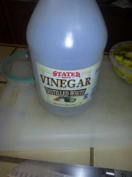 Usé 4 cuartos de galón blanco vinagre y 2 cuartos de galón de agua con la sal kosher 1/2C.  Poner todo a hervir y entonces añadir el ajo.  Cocinar a fuego lento durante unos 15 minutos dejar que el ajo "infundir" en la salmuera.