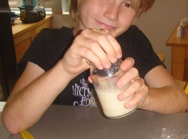Con el envase de yogurt nos envuelve alguna cinta alrededor del envase para asegurarse de que la tapa en lugar.