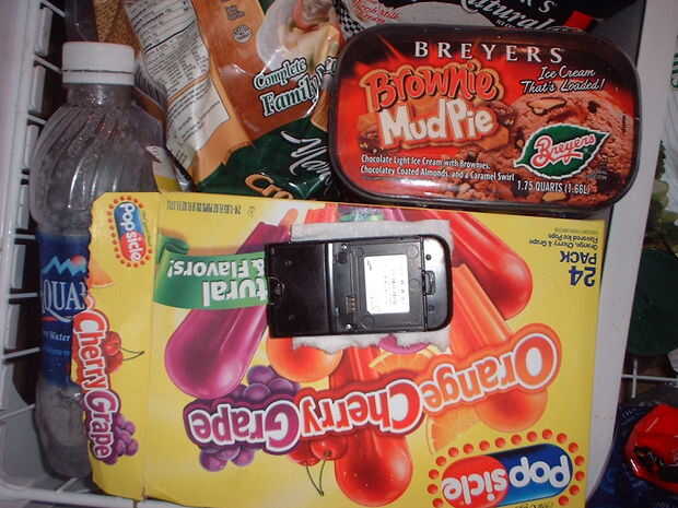 Este método mi también conducen al problema actuando para arriba otra vez como los deshielos del teléfono, o un problema peor actuando que el teléfono se descongela y el agua se mueve a un lugar diferente.
