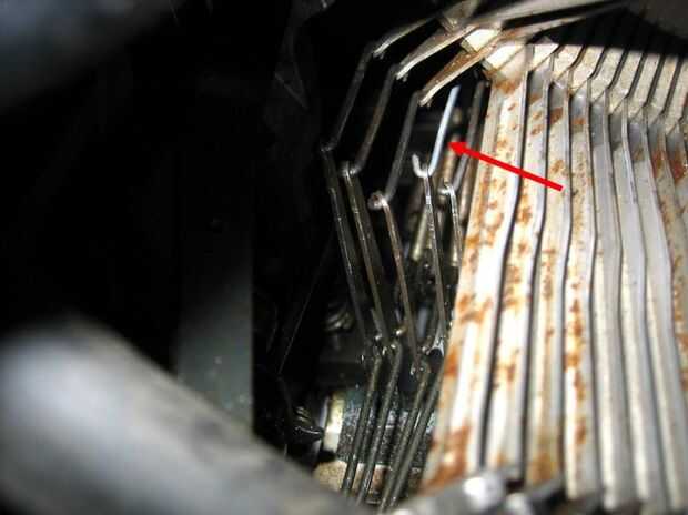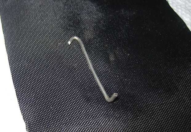Trabajando desde la parte superior de la máquina, fue capaz de medir exactamente cuánto tiempo esta varilla de conexión debe ser, y en qué ángulo los extremos tendría que estar doblado. Utilizando un alambre de acero rígido, hice la nueva varilla de conexión que se muestra en la foto 1. Esta parte era bastante fácil; instalación tomó cerca de 12 intentos!