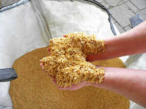 2. Añadir cáscaras de arroz como el mosto es puesto en la prensa para ayudar en la extracción del jugo.