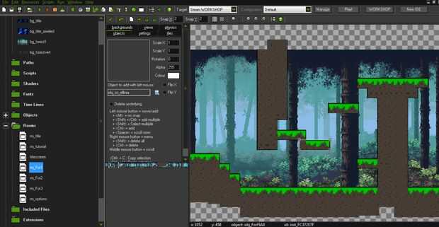 Ahora que cada habitación era planeada y cada objeto posible necesitada había sido creado, fue tiempo para realmente hacer las habitaciones una realidad. ¿Debe ser fácil, verdad? Por desgracia, no. Las habitaciones del edificio, incluso con un guía, era fácilmente el proceso más lento y podría tomar hasta 8 horas para una habitación grande ser perfeccionado. Esto fue debido principalmente a la decisión de la frontera con los objetos y la necesidad de constante error pruebas y fijación. Agregar que un borde me hizo tener que trabajar con alrededor de 15 objetos en lugar de 4 o 5 y 3 encima de la otra en un lugar para la mirada correcta. Por suerte, interfaz de GameMaker para la creación de habitaciones es muy simple y era capaz de poner todo junto sin demasiados problemas.