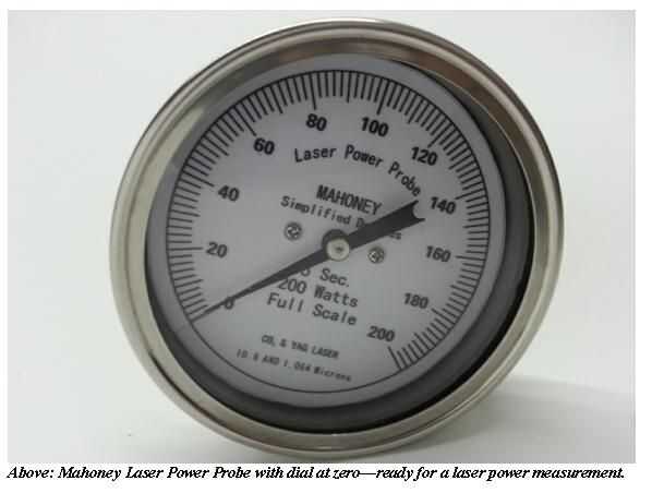 El medidor de potencia láser Mahony ajusta láser CO2 y YAG láser. Trabaja con láseres que operan en 10,6 micrones y 1,06 micrones. En 1,06 micrones funciona para YAG, fibra, lado del diodo bombeado y fin del diodo bombeado láser y cualquier tecnología láser adicional en esta longitud de onda.