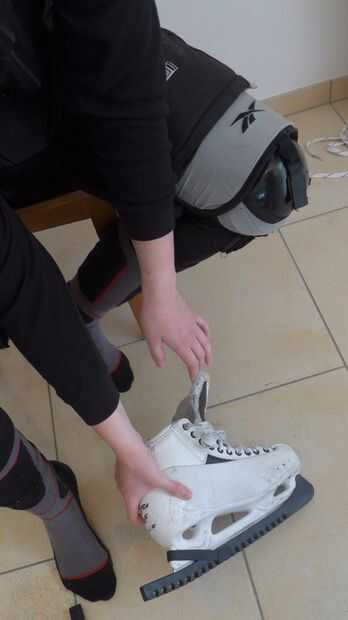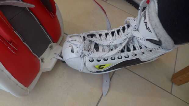 Patines portero son diferentes de patines de hockey jugador, porque son más recto, más cerca del hielo y ofrecen una protección mucho más. Si usted es serio acerca de querer ser un portero (para un período más largo de tiempo) o querer ser un portero profesional, recomiendo utilizar estos patines en lugar de normal de hockey sobre patines. Cuando caminando sobre tus patines, asegúrese de que usted camina en pisos que no dañen la hoja de tus patines. Si no está seguro de si o no está bien que caminar sobre un piso de ciertas, use protectores de disco bajo tus patines. No caminar sobre las rocas, metal, piedras, piedra, etc..