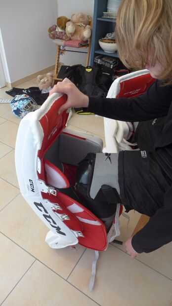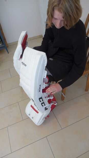 Cojines de la pierna están muy importantes como un portero porque se puede utilizar para bloquear los discos y les impiden entrar en la meta. Las almohadillas también protegen la pierna, en la parte delantera y un poco en la espalda, los dedos del pie hasta la cadera. Esta pieza es producida por muchas empresas diferentes y en diversas formas, tamaños, colores y tipos. Cada portero tiene sus propias preferencias para los cojines.
