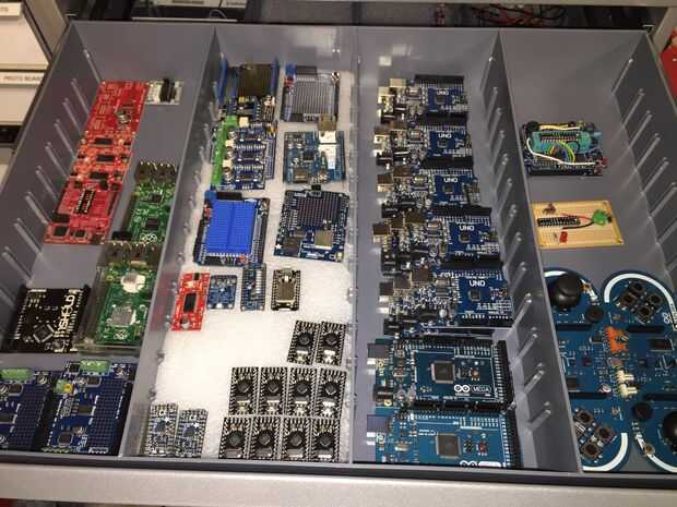 nuestro espacio fabricante recibió un paquete de la electrónica del Jameco. algunos de ellos son nuevos, como LEDs, puentes, baterías y breadboards. Algunos son todo tipo de componentes usados.antes de que los usa electrónica, pasamos algún tiempo pa