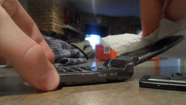 limpio uno de una clase mirar para tu teléfono!Paso 1: fuentes de un pequeño rodillo fino de cinta adhesivatijerasun teléfono celularPaso 2: Vamos a la cinta! Comenzar con la alineación de la parte inferior. Comencé en mi altavoz para hacer más fácil