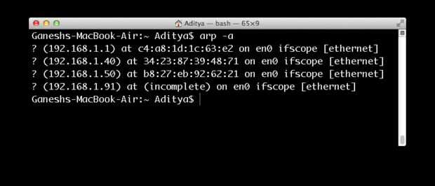 Ahora, usted tiene que encontrar todos los dispositivos en la red junto con sus direcciones Mac. Podemos hacerlo mediante el comando siguiente en terminal: