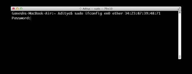 Sudo ifconfig en0 éter sudo ifconfig en0 ether 34:23:87:39:48:71