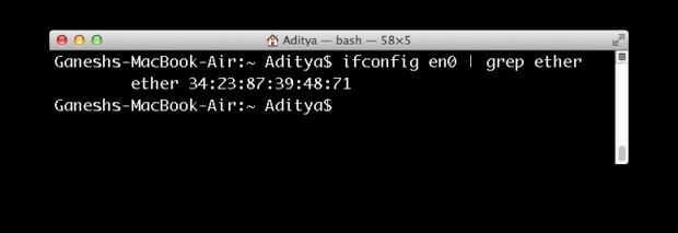 Escriba el comando utilizado para que usted consiga dirección Mac en el paso 1