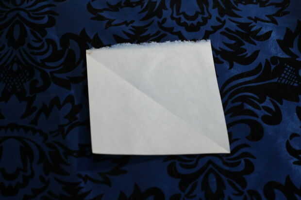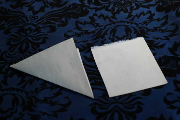 Hacerlo doblando una esquina sobre para hacer un triángulo rectángulo, luego recortar la parte sobrante de su rectángulo. Cuando se despliegan el triángulo tienes un cuadrado perfecto.