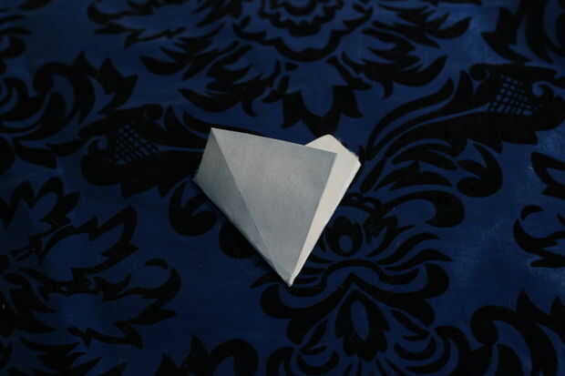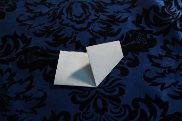 Coloque el rectángulo de modo que el pliegue de su papel apunta hacia usted. Esta es la parte más delicada de la todo copo de nieve, doblar los bordes en un cono que tiene 3 ángulos iguales de 60 grados. En otras palabras. El borde exterior de un redil debe alinearse con el interior pliegue de su segundo doblez. ¿Todavía confundido? Haga clic en adelante. :)
