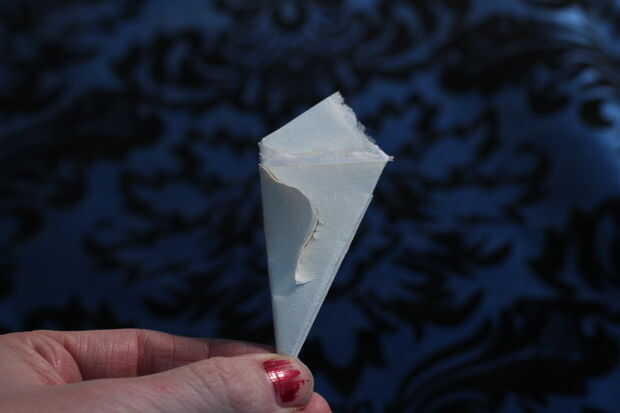 Corte unas muescas en el pliegue para hacer pequeños agujeros y diseños dentro de cada punto. Corte las muescas en el otro lado, así como para más detalle.