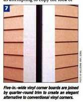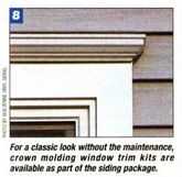 Por ejemplo, en vez de plano típico, aburridos detalles de esquina de vinilo convencional, los fabricantes ahora ofrecen juntas de esquina adicional-anchos en perfiles lisos y estriados. Las dos partes se unen por clásico ajuste de cuarto redondo, que está disponible en el juego o contrastando colores (foto 7). Incluso puede añadir un toque de clase a la parte inferior de aleros de tejado con paneles de sofito con cuentas. Cuando se trata de detalles de la ventana, la mirada tradicional de madera sin el alboroto nunca ha sido más fácil de encontrar.