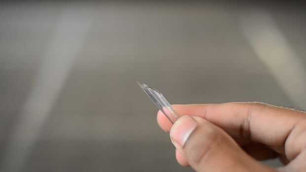 Tome 1 de las piezas y cortar un extremo en un ángulo como esta.
