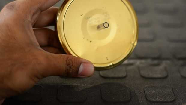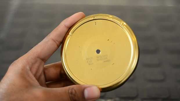 A continuación, desenrosque la tapa de la jarra y perfore un agujero de 4 milímetros en el centro. Digo 4 milímetros porque el diámetro exterior de la línea de aire utilicé era de 5 milímetros. Probar y hacer un agujero que es la mitad de la línea de aire para obtener mejores resultados! -Así si su línea de aire es de 6mm, que el orificio de 3-4mm para el ajuste más apretado.