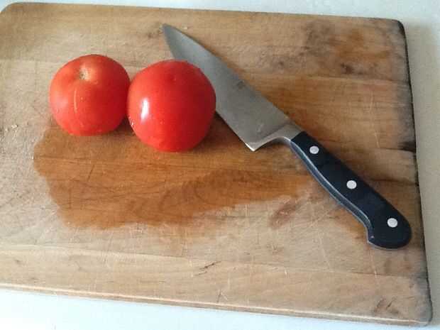 Lavarse las manos. Lavar los tomates en agua fría.