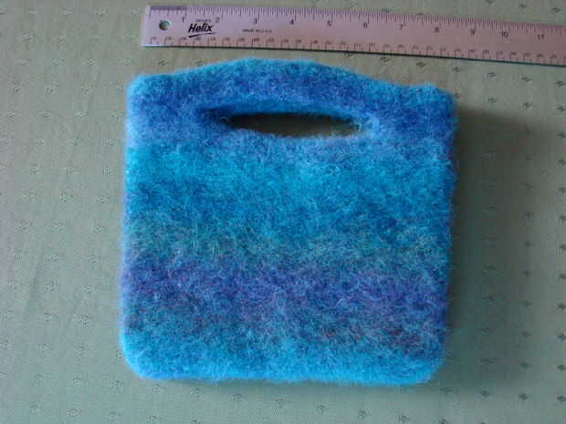 El proceso de batanado creará un montón de 'fuzzies' en la bolsa. Para deshacerse de ellos, basta con tomar unas tijeras, tire ligeramente de los fuzzies y cuidadosamente les cortar el. Tenga cuidado de no cortar su bolso de fieltro en el proceso!