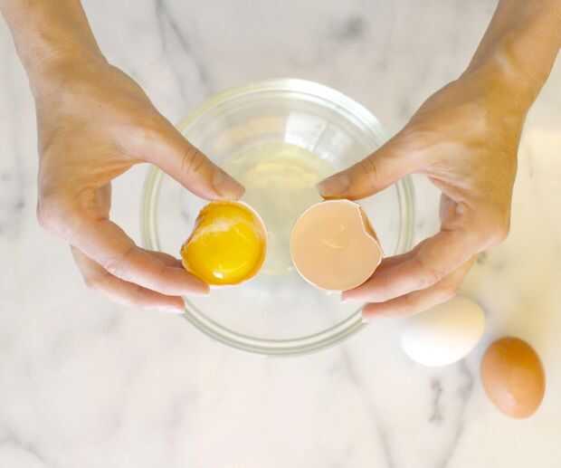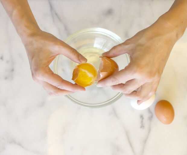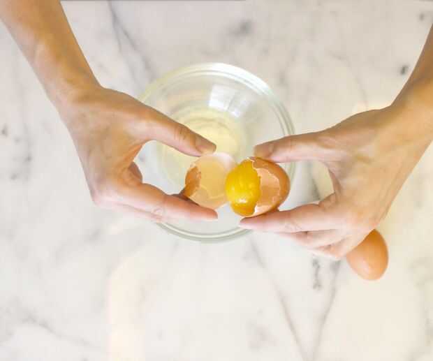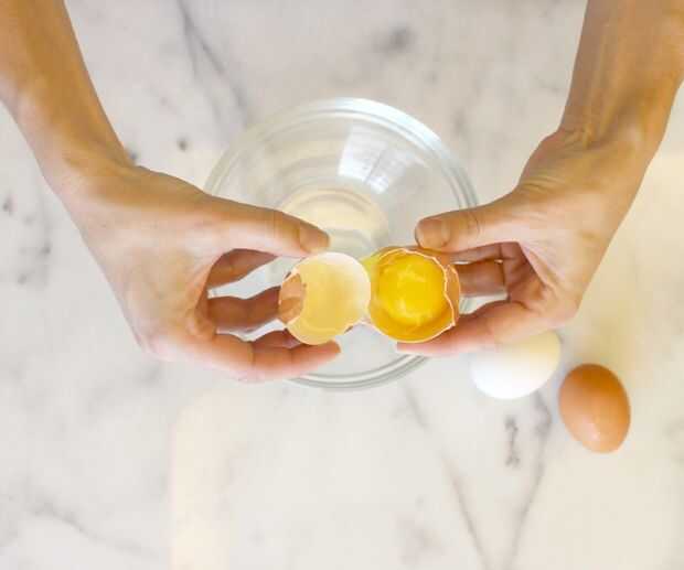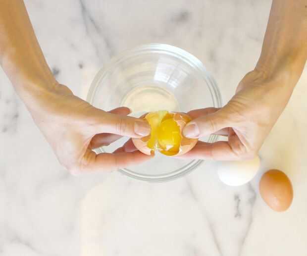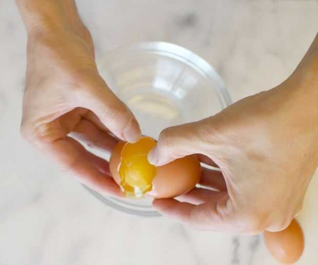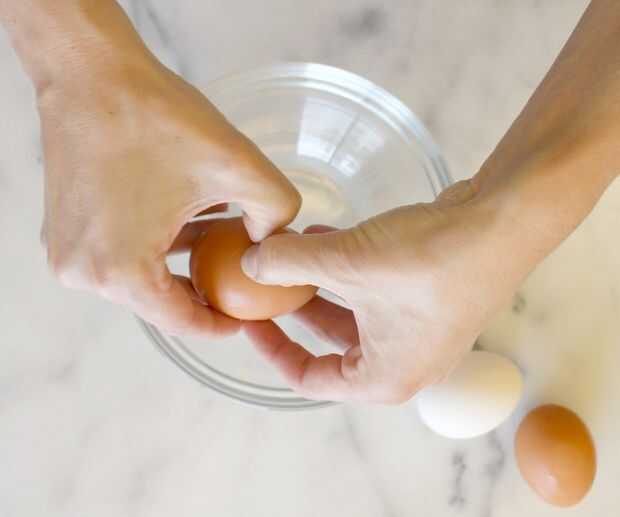 Utilice los pulgares para apalancar las dos mitades, teniendo cuidado de mantener la yema en una de las mitades.