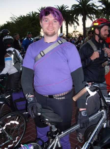 Utilizar EL alambre para el traje, que hace más impresionante que sólo un tío con mallas moradas.