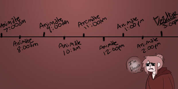 Lo más probable es que si se vuelven un animador, hay alguna razón para ello.  Y lo más probable es que si haces esta animación para algo, va a ser una fecha límite. Y vas a tener que hacer ese plazo, planeando estratégicamente a cada minuto de cada día para darte suficiente tiempo para dormir y completarla. Estas cosas toman todas las clases de tiempo, y cuando usted tiene un límite de tiempo que llegar a trabajar en ello, pues el estrés sólo aumenta diez veces. E incluso no meterme en lo que su gusto a ala y la esperanza de que su futuro auto mágicamente elaborar la cantidad justa de tiempo para hacerlo. No creo que tu corazón pequeñito poco podría tomarlo.