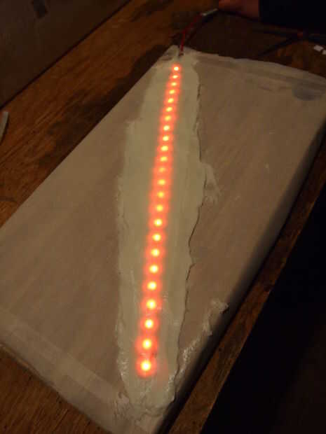 Enchufe en la tira de LED a la batería y ver si todo está bien, lo que probablemente hizo; la silicona será rojo brillante, con toda la estructura iluminando y difundido.
