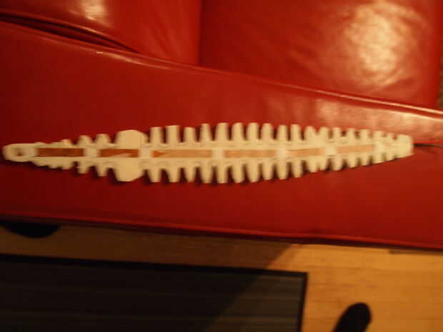 Una vez todo curado retire de la Junta y corte la forma de las vértebras. El pergamino es grande en que se puede ver su patrón a través de él como papel de calco. Sólo cortarlo con tijeras regulares o una cuchilla exacto, ser cuidado de no cortar la tira o los cables aunque.