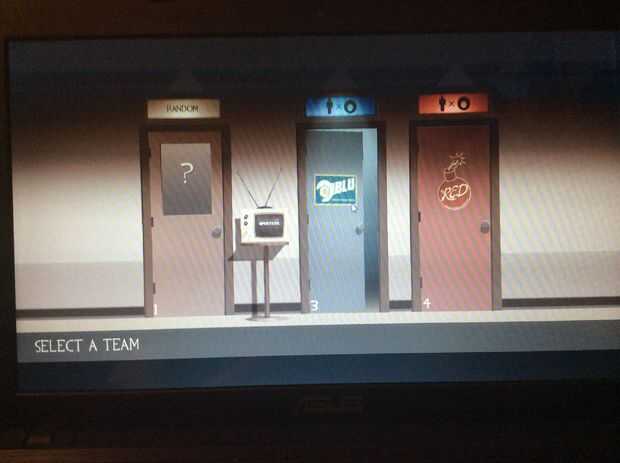 Luego se llega a elegir un equipo (haga clic en una de las puertas, la tv, como dice en la pantalla, lo pondrá en modo espectador y usted no será capaz de jugar, a menos que usted unirse a un equipo)
