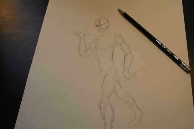 Imprimir algunas fotos al azar de tomas de cuerpo completo de las personas. O un maniquí de madera. Dibujar bocetos ásperos, esenciales de diferentes posiciones. Hacer al menos cincuenta de ellos. Crear el cuerpo de formas circulares básicas. Ningún trabajo de sombreado o detalle.