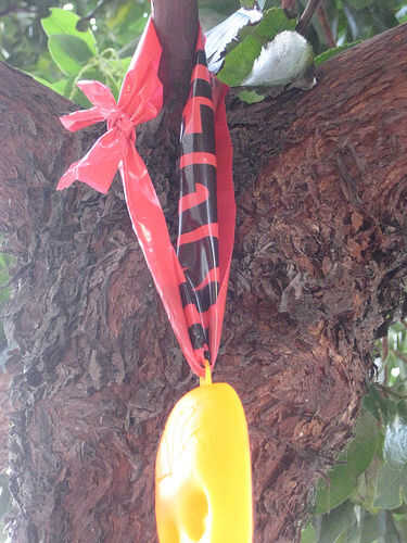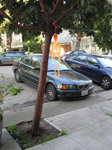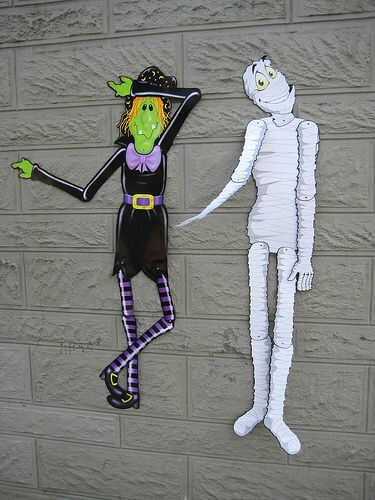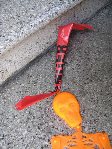 Tratar de dejar el trabajo un poco temprano si Halloween es un día de semana y poner tus decoraciones con cinta fuerte que no va a dañar nada por lo que está abierto a los negocios mientras todavía luz hacia fuera. Conforman el conjunto visible a Trick que podría estar mirando hacia abajo su bloque para ver si vale la pena caminar. Pero obviamente, no obstruir la acera. Las personas deben ser capaces de pasar con una silla de paseo, un niño pequeño y un perro sin ningún problema.